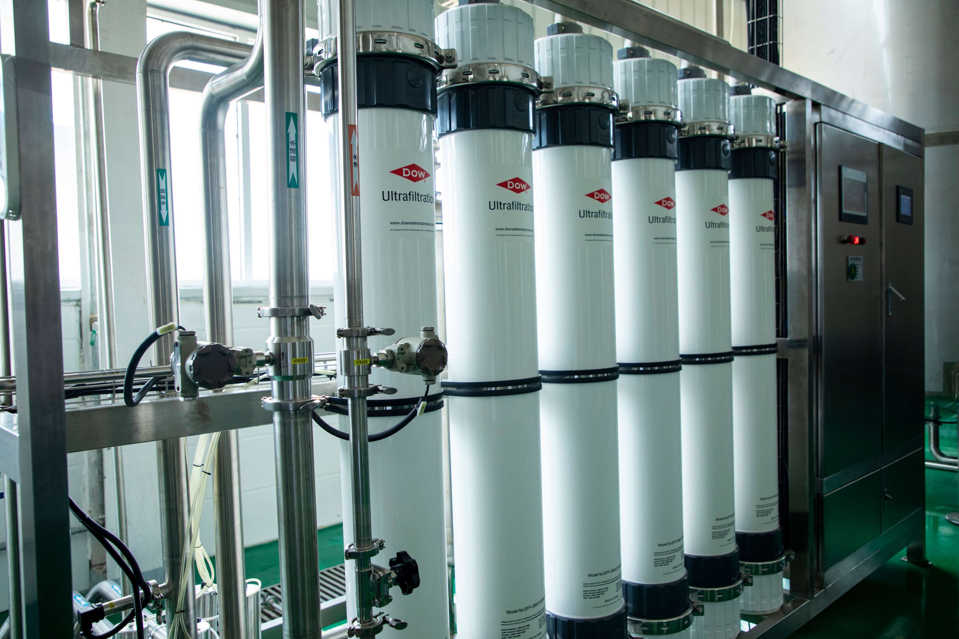 多级精密过滤系统 核心采用杜邦陶氏中空超滤膜+波尔除菌滤芯,数字化监测各阶段水质,有效滤除杂质、细菌与颗粒,提升水质稳定性。 |